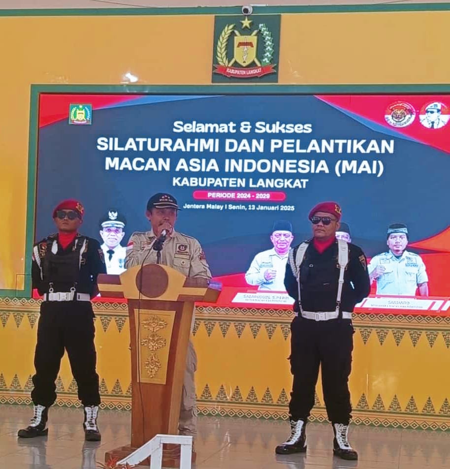 Viral24jam.Langkat (Sumut)- Dalam rangka acara Silaturahmi dan sekaligus acara pelantikan Dewan Pengurus Cabang (DPC) ormas Macan Asia Indonesia (MAI) Kabupaten Langkat Periode 2024-2029, resmi dilantik, acara pelantikan tersebut digelar di Jentera Malay, Rumah Dinas Bupati Langkat pada Hari Senin 13 Januari 2025 berjalan dengan tertib,aman,sukses dan lancar.