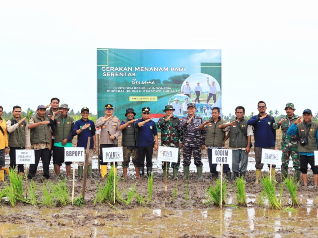Viral24jam. MERANTI – Bupati Kepulauan Meranti, AKBP (Purn) H. Asmar, bersama unsur Forkopimda melakukan penanaman benih padi di area persawahan Desa Mekar Baru, Kecamatan Rangsang Barat, Rabu (23/4/2025).