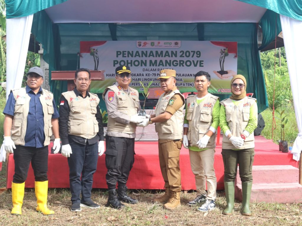 Viral24jam. Meranti– Dalam rangka memperingati Hari Bhayangkara ke-79, Polres Kepulauan Meranti bersama sejumlah pihak melaksanakan kegiatan penanaman 2.079 pohon mangrove di Pantai Desa Mekong, Kecamatan Tebing Tinggi Barat, Rabu (17/6/2025). Kegiatan ini dihadiri langsung oleh Bupati Kepulauan Meranti AKBP (Purn) H. Asmar 17 Juni 2025.