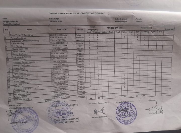 Karo|Viral24jam.id Penggelapan yang di tuduhkan kepada Ketua Kelompok Tani Lopiga Desa Rimo Bunga Kecamatan Mardingding Kabupaten Karo...