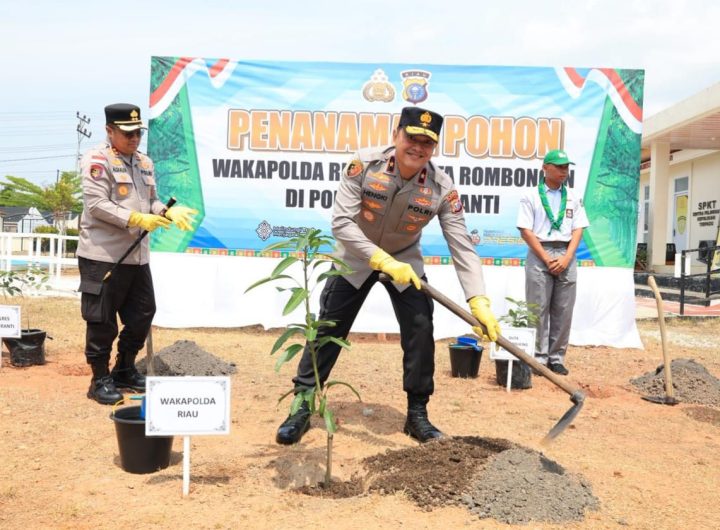 Viral24Meranti – Wakapolda Riau Brigjen Pol Dr. Hengki Haryadi SIK MH, melakukan penanaman pohon di halaman Mako...