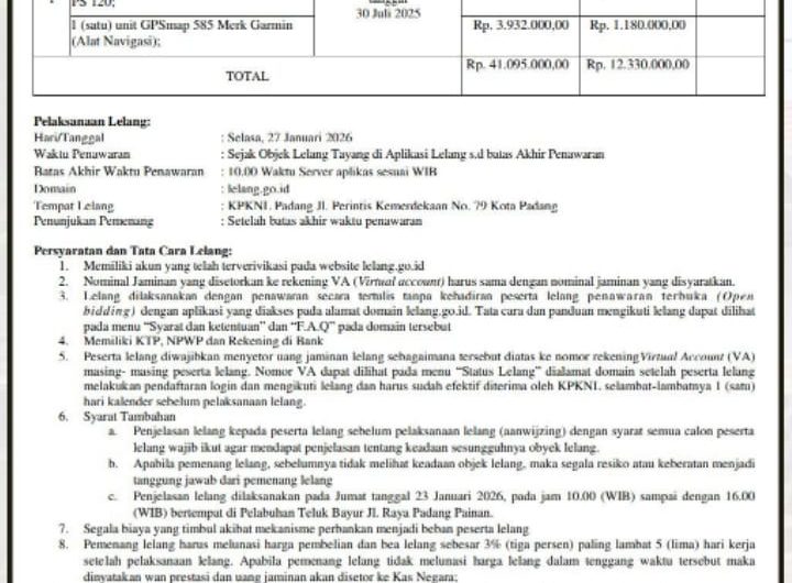 Viral24jam.id|Pessel-Panitia Lelang Barang Rampasan Kejaksaan Negeri Pesisir Selatan melalui perantaraan Kantor Pelayanan Kekayaan Negara dan Lelang (KPKNL)...
