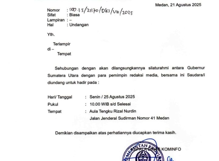 Medan – Sumatera Utara,–Acara silaturahmi Gubernur Sumatera Utara, Bobby Nasution, dengan insan pers pada Senin (25/8/2025) di...