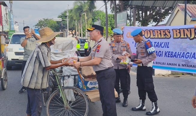 Binjai ( SUMUT ) Kapolres Binjai AKBP Mirzal Maulana, S.I.K., S.H., M.M., M.H., berbagi Takjil di bulan...