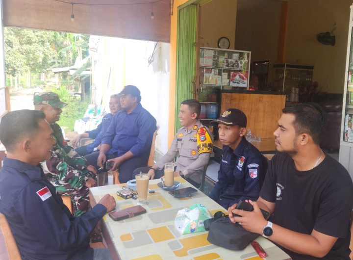 VIRAL24JAM.ID,INHIL.-Kapolsek Kempas, AKP Mardani Tohenes, SH, MH, mengadakan pertemuan santai sekaligus ngopi bareng dengan Panitia Pemungutan Suara...