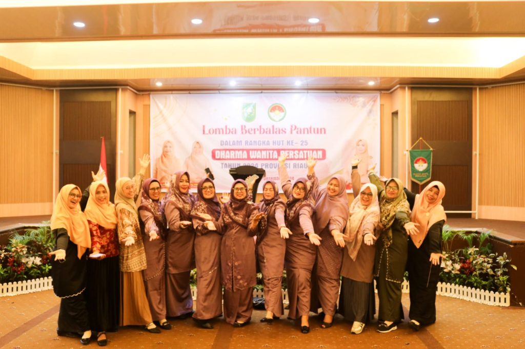 Diikuti sebanyak 24 tim yang terdiri dari 10 tim DWP Kabupaten/Kota se-Provinsi Riau dan 14 tim dari DWP Provinsi Riau, lomba berbalas pantun ini mengusung tema pendidikan, ekonomi, sosial dan budaya.