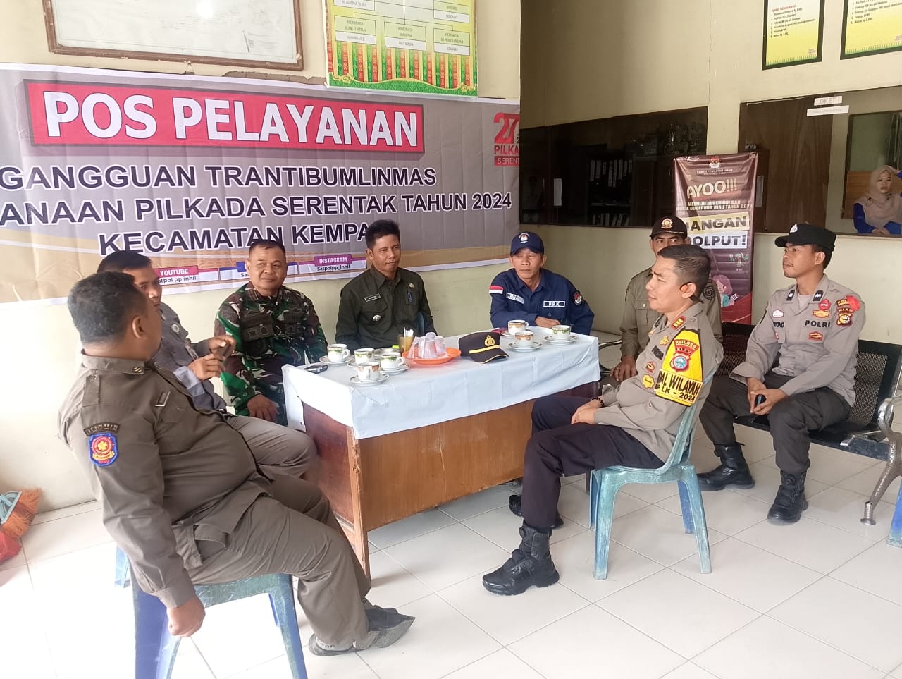 VIRAL24JAM.ID.INHIL.-Forum Koordinasi Pimpinan Kecamatan (Forkopimcam) Kempas menggelar rapat koordinasi untuk mempersiapkan Apel Siaga Pengamanan Tempat Pemungutan Suara (TPS) dan patroli bersama menjelang masa tenang Pemilihan Kepala Daerah (Pilkada) 2024.