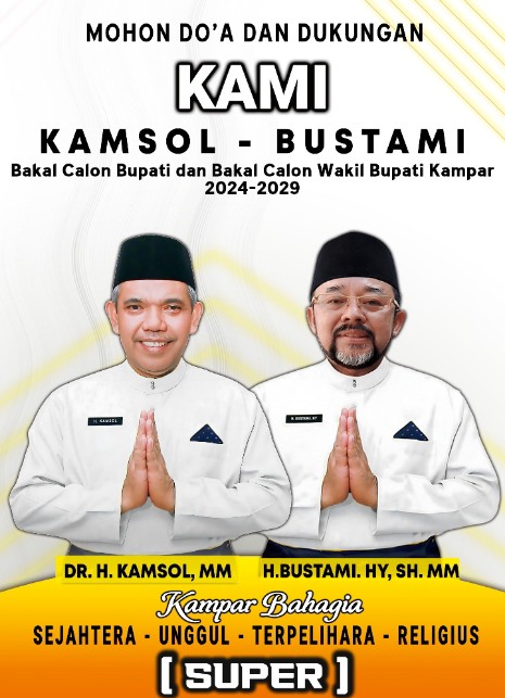 Kamsol dan Bustami berharap, melalui Pilkada 2024 ini, Kabupaten Kampar yang mereka cintai ini, dapat dipimpin oleh sosok yang amanah dan mampu membawa perubahan yg baik bagi Kabupaten Kampar, Namun jika pasangan KAMI yg akan diberikan Allah amanah, Maka in syaa Allah Kampar akan menuju visi “KAMPAR SUPER” yang Sejahtera, Unggul, Terpelihara, dan Religius. Dengan kebersamaan dan semangat perubahan, mereka optimis Kampar akan menjadi negeri Baldatun Tayyibatun wa Rabbun Gafhur—daerah yang makmur sejahtera, dan penuh berkah bagi seluruh warganya.