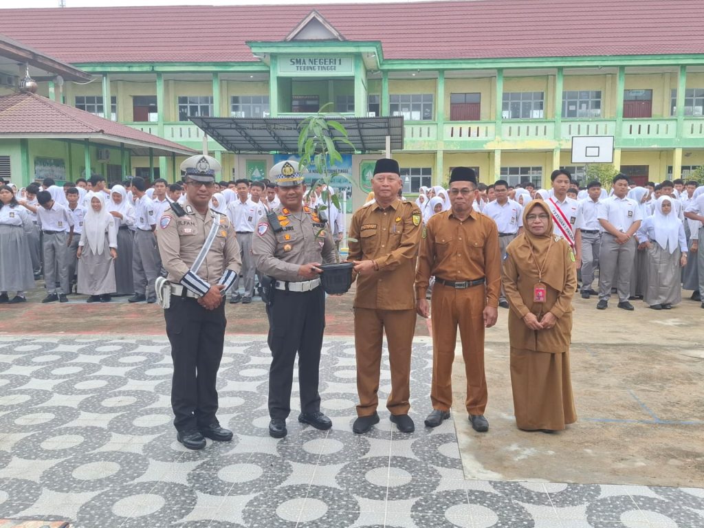 Beranda » Jadi Pembina Upacara, Kasatlantas Polres Meranti Ajak Pelajar Tertib Berlalulintas & Serahkan Bibit Pohon