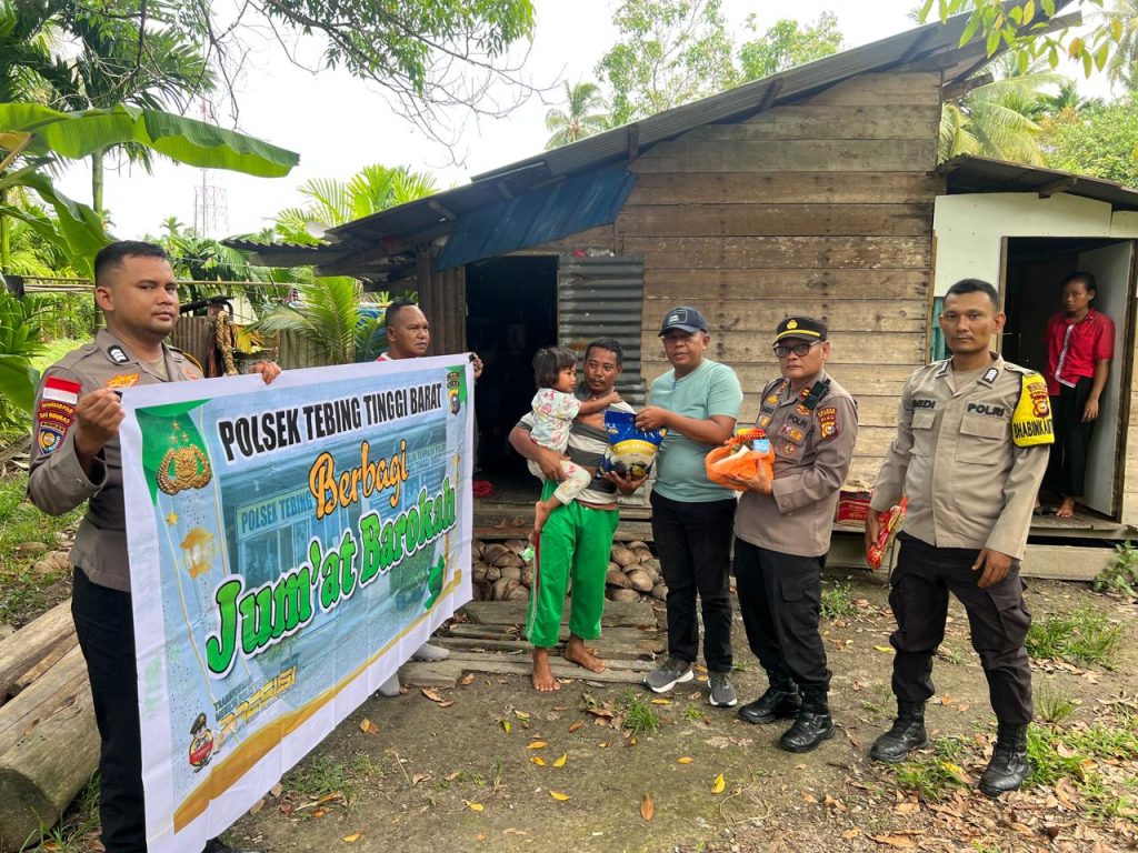 Viral24jam. Meranti – Wujud kepedulian terhadap masyarakat terus ditunjukkan Polsek Tebing Tinggi Barat melalui program Jumat Barokah. Pada Jumat pagi, 11 Juli 2025, sekira pukul 10.30 WIB, jajaran Polsek Tebing Tinggi Barat menyalurkan bantuan sembako kepada warga kurang mampu di wilayah Kecamatan Tebing Tinggi Barat, Kabupaten Kepulauan Meranti.