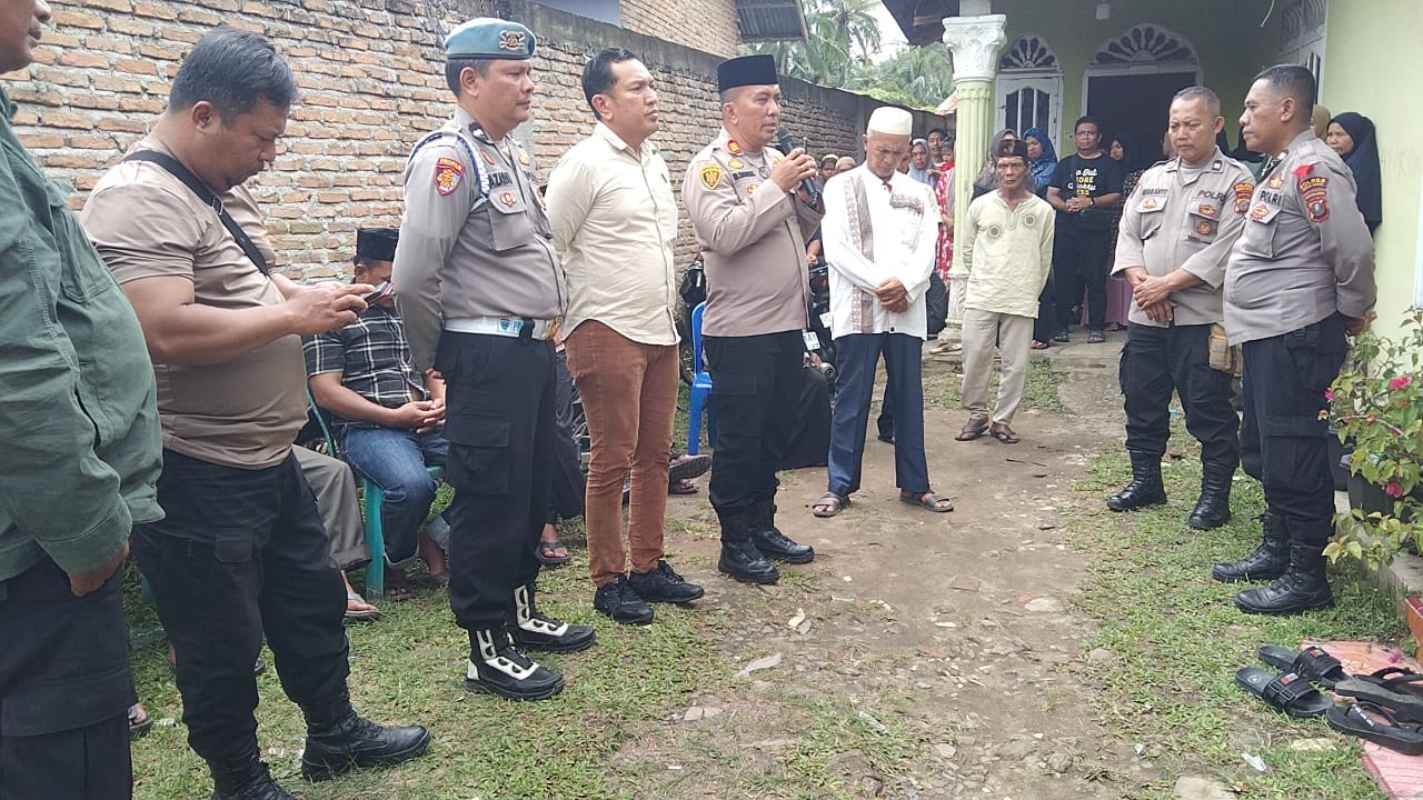 Kapolsek Dolok Masihul bersama sejumlah personel Polsek Dolok Masihul melayat ke rumah duka Almarhum Pairin alias Ateng, warga Dusun II Desa Karang Tengah, Kecamatan Serbajadi, Kabupaten Serdang Bedagai, yang meninggal dunia saat diamankan oleh petugas keamanan (security) PTPN IV Sarang Giting.