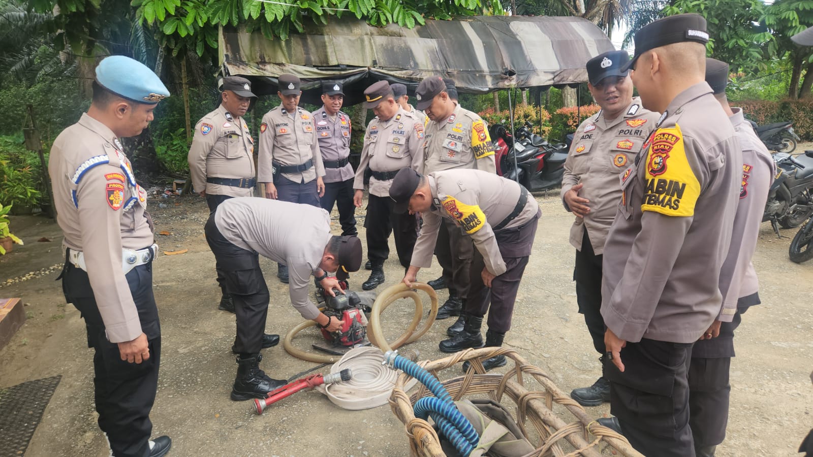 Beranda » Kapolsek Kempas Pimpin Apel Kesiapsiagaan Karhutla dan Cek Peralatan di Mapolsek Kempas.