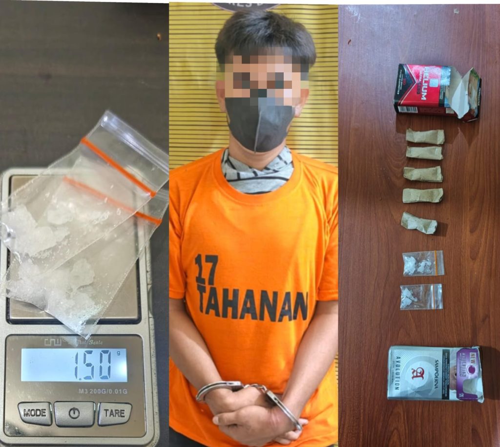 ” Barang bukti yang ditemukan dari JTS (18) berupa : ” 2 (dua) buah plastik klip transparan yang berisi narkotika jenis sabu-sabu dengan derat bruto 1.50 gram,