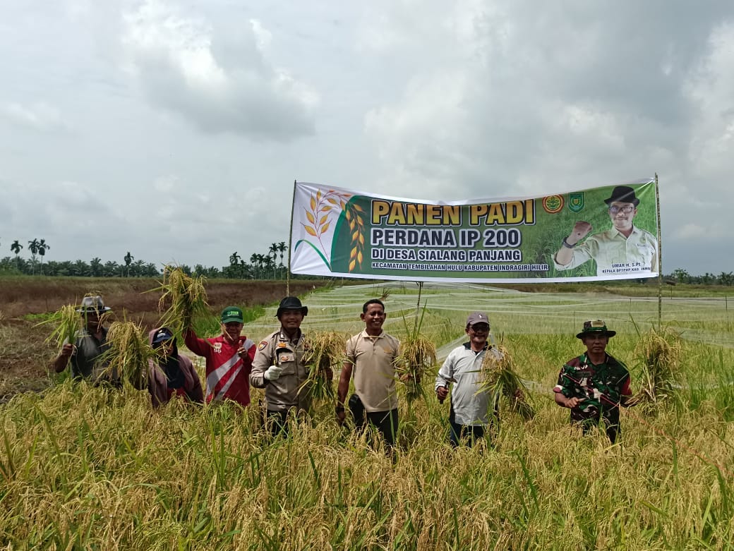 VIRAL24JAM.ID,-INHIL.-Desa Sialang Panjang, Kecamatan Tembilahan Hulu, Kabupaten Indragiri Hilir, melaksanakan panen perdana padi dengan metode Intensifikasi Pertanian 200 (IP-200) pada akhir tahun 2024.