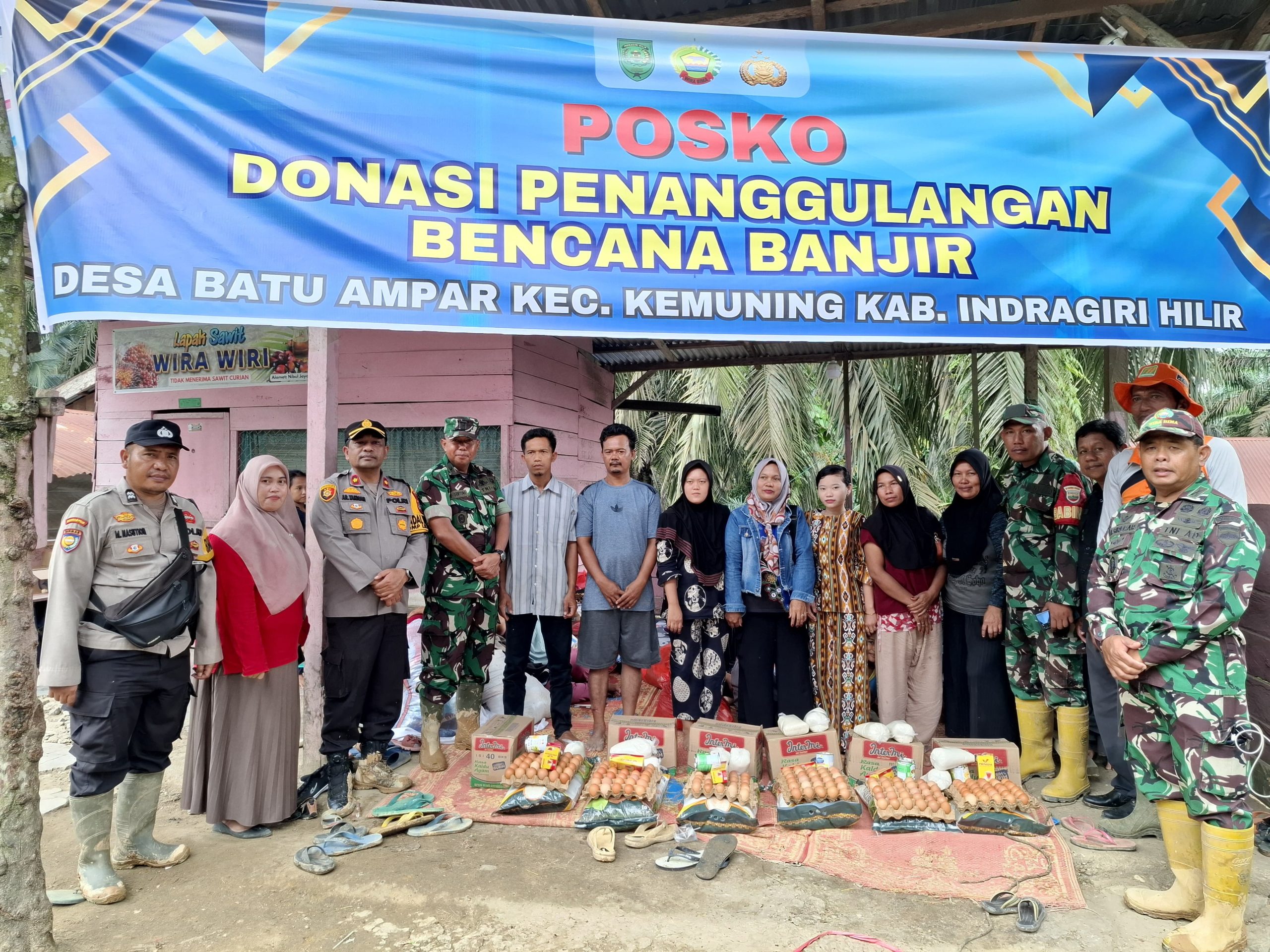 VIRAL24JAM.ID,INHIL.-Kodim 0314/Inhil menyalurkan bantuan kemanusiaan kepada warga terdampak banjir di Dusun Nibul, Desa Batu Ampar, Kecamatan Kemuning, pada Kamis (2/1/2025).
