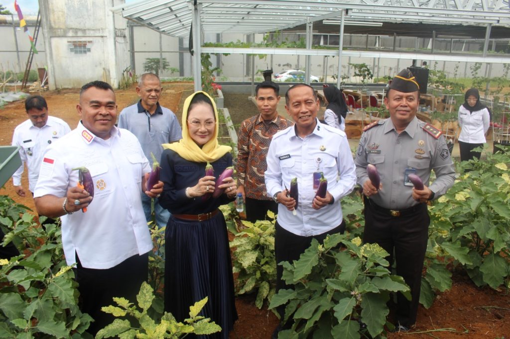 Tak hanya itu Wakil Ketua Komisi XIII berkesempatan melakukan panen terong ungu, tomat apel hingga cabe hasil kegiatan warga binaan Lapas Warungkiara.