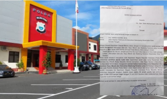 TERNATE–Sengketa kepemilikan lahan di Kelurahan Ubo-Ubo, Kecamatan Ternate Selatan kembali memanas setelah Kepolisian Daerah (Polda) Maluku Utara mengeluarkan somasi kepada warga dengan tenggat waktu 60 hari. Padahal, berdasarkan jejak dokumen dan kesepakatan masa lalu, terdapat inkonsistensi yang mencolok antara komitmen hibah lahan tahun 2020 dengan klaim kepemilikan saat ini.