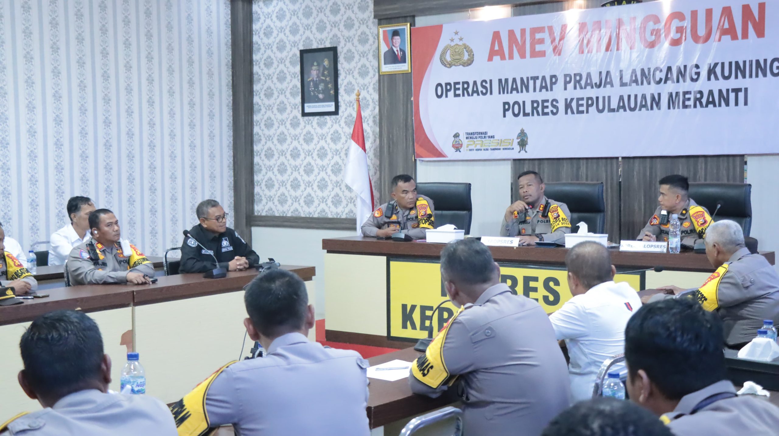 Viral24jam. MERANTI – Polres Kepulauan Meranti mengelar Vidcon Zoom Anev Mingguan Ke -X Polres Meranti dalam rangka Operasi Mantap Praja Lancang Kuning tahun 2024, berlangsung di Ruang Vidcon Jalan Lintas Gogok Desa Gogok Darussalam, Senin (04/11/24) Pagi.