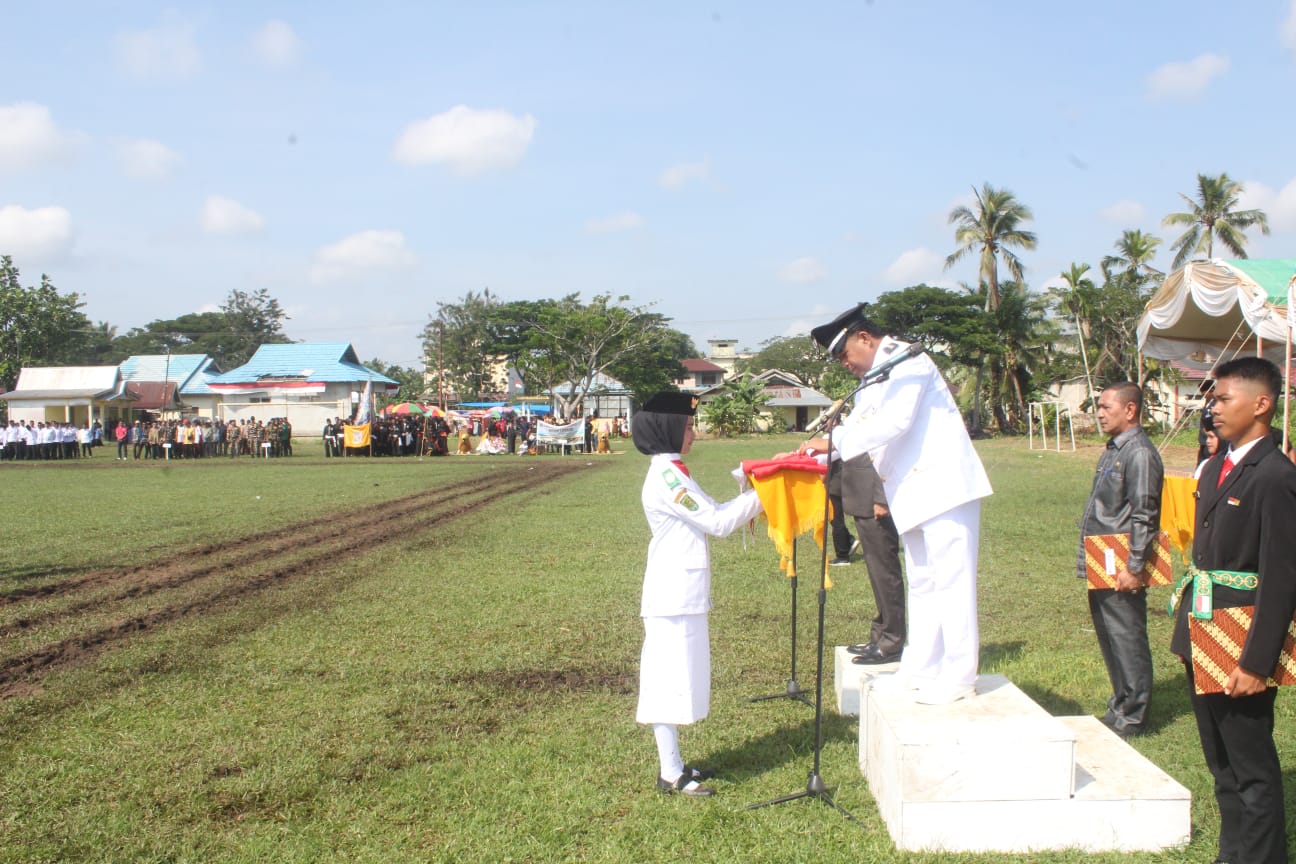 Sedangkan Pembawa baki bendera merah putih Ismiati Afrinza dan pengibar bendera merah Putih
