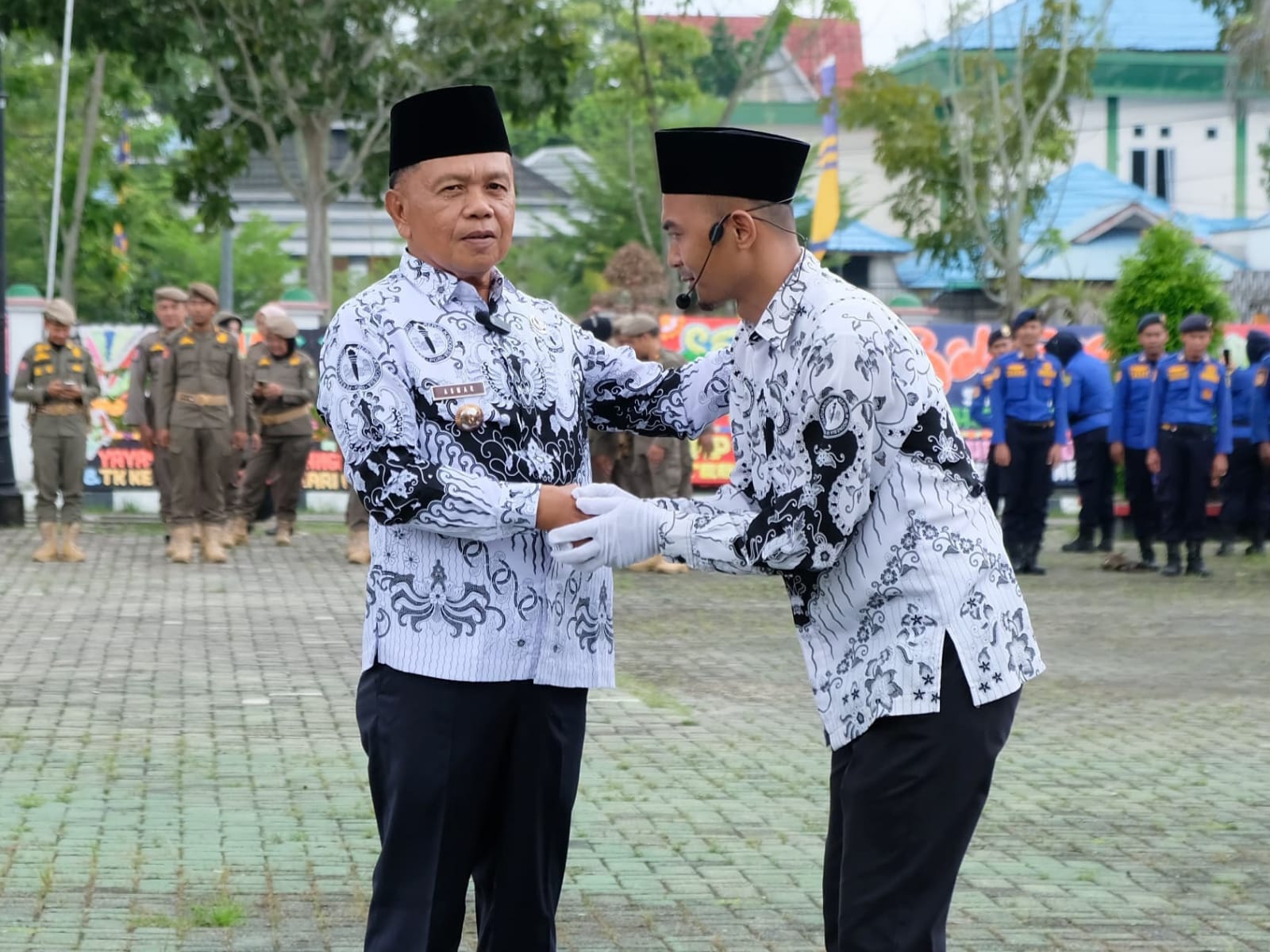 Usai pelaksanaan upacara, Plt Bupati Asmar beserta PGRI menyerahkan penghargaan kepada sejumlah guru berprestasi dalam ajang Jambore Guru dan Tenaga Kependidikan (GTK) Hebat dan apresiasi kepada Kandidat Sekolah Rujukan Google (KSRG).