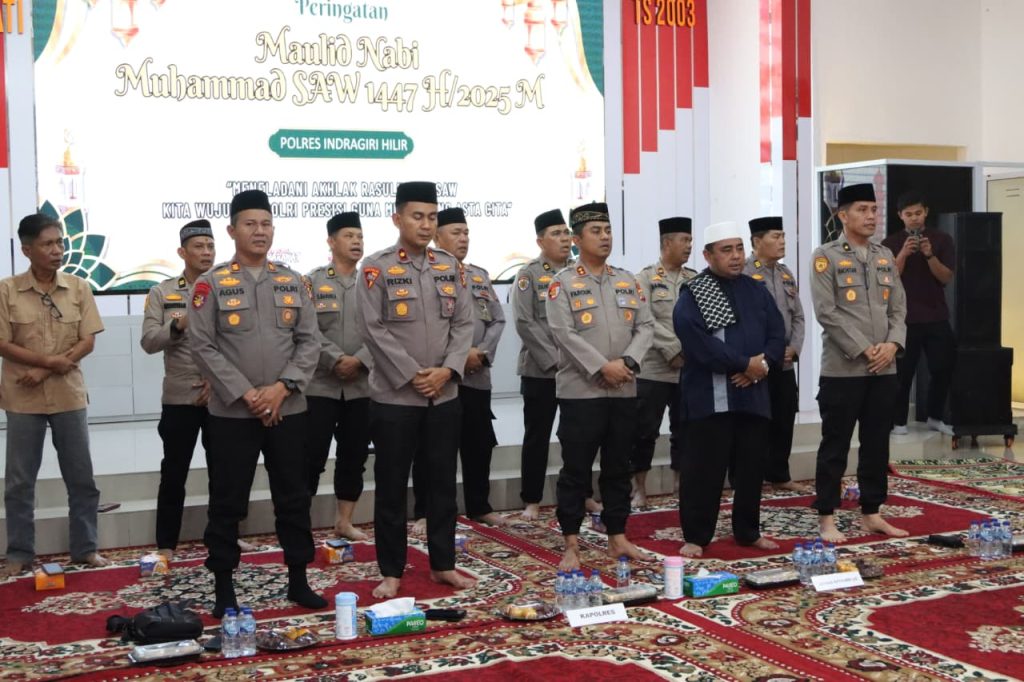VIRAL24JAM.ID.-INHIL.-Polres Indragiri Hilir menggelar kegiatan peringatan Maulid Nabi Besar Muhammad SAW 1447 H/2025 M pada Jumat (5/9/2025) pukul 08.30 WIB di Aula Rekonfu Polres Indragiri Hilir. Acara berlangsung penuh khidmat dan dihadiri jajaran pimpinan, anggota, serta masyarakat.
