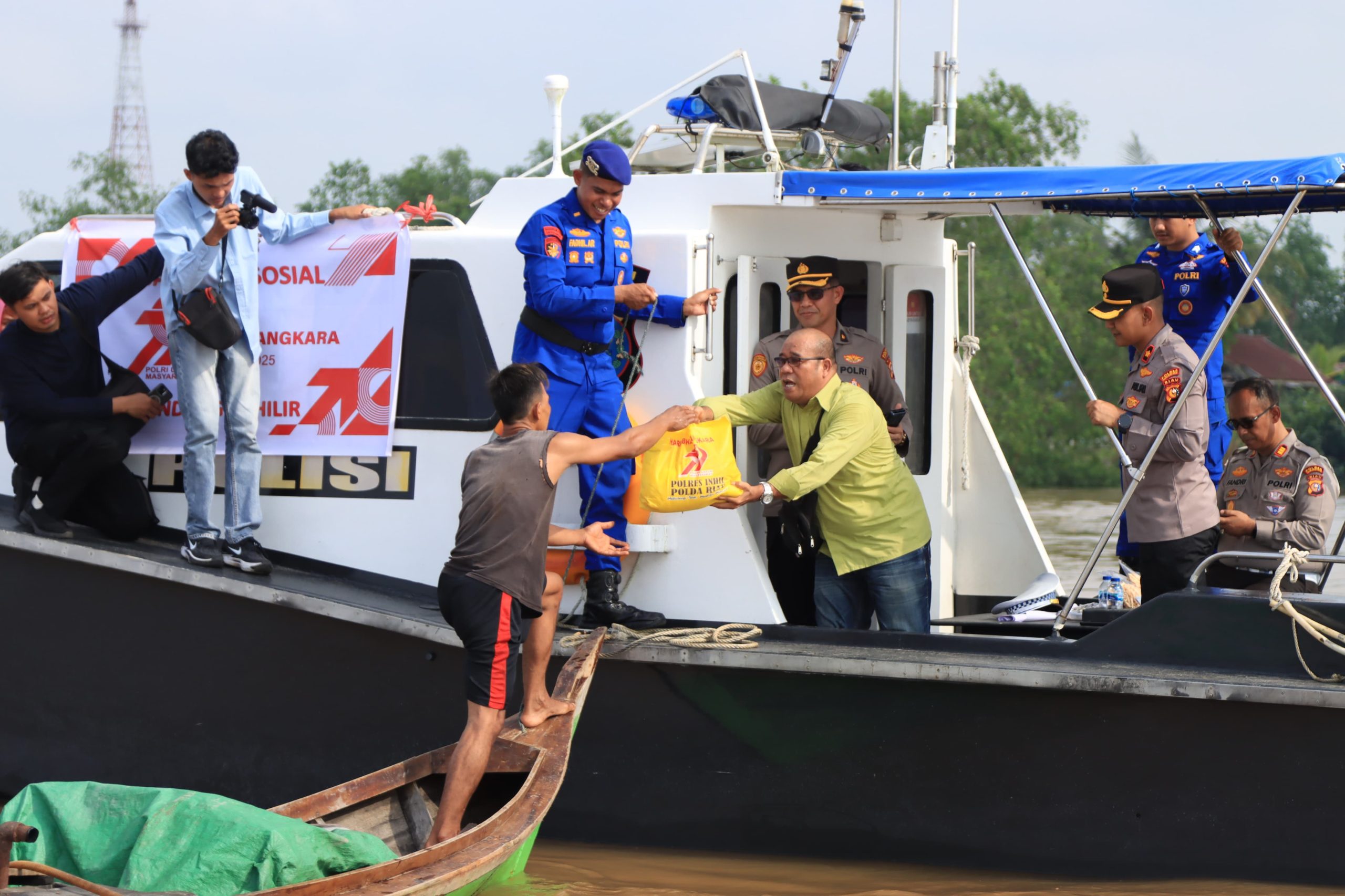 Dalam kesempatan tersebut, Polres Indragiri Hilir mendistribusikan sebanyak 200 paket bantuan sosial berupa sembako. Paket tersebut dibagikan ke sejumlah titik di wilayah pesisir perairan Sungai Indragiri dengan menggunakan sarana transportasi air.
