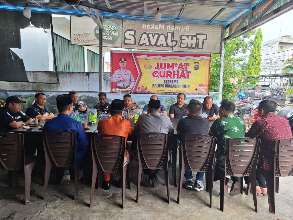 VIRAL24JAM.IDINHIL.-Polres Indragiri Hilir (inhil) kembali menggelar kegiatan Jum’at Curhat, sebuah forum diskusi terbuka yang mempertemukan jajaran kepolisian dengan masyarakat. Kali ini, kegiatan berlangsung di Kedai Kopi GM 23, Jalan Gajah Mada, Tembilahan, dengan menghadirkan para tokoh lintas agama dari Forum Kerukunan Umat Beragama (FKUB) Kabupaten Indragiri Hilir.Jumat (4/7/2025)