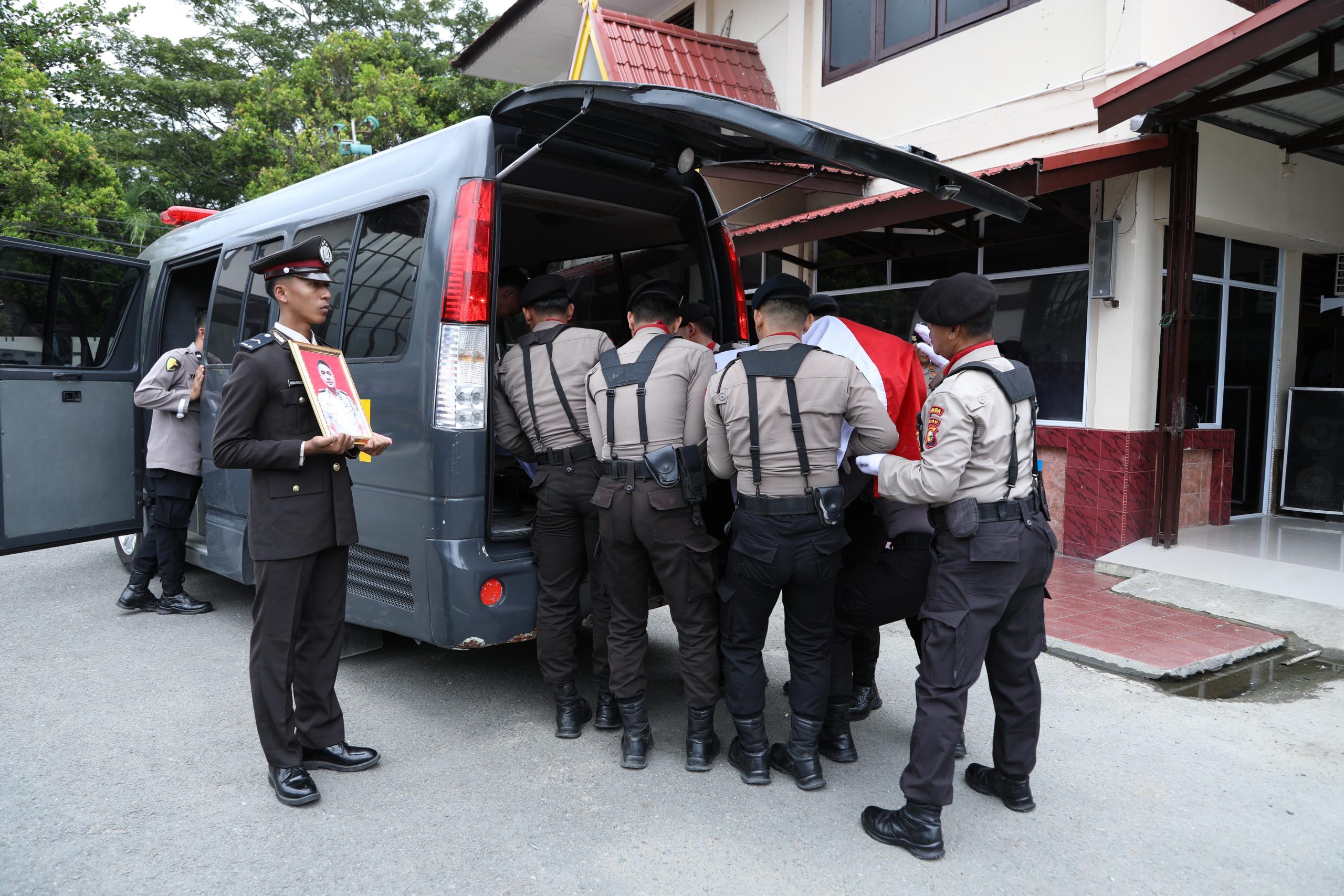 Jenazah almarhum Iptu Fauzan diserahkan kepada pihak keluarga untuk selanjutnya dilaksanakan pemakaman di Kabupaten Kampar, Provinsi Riau.