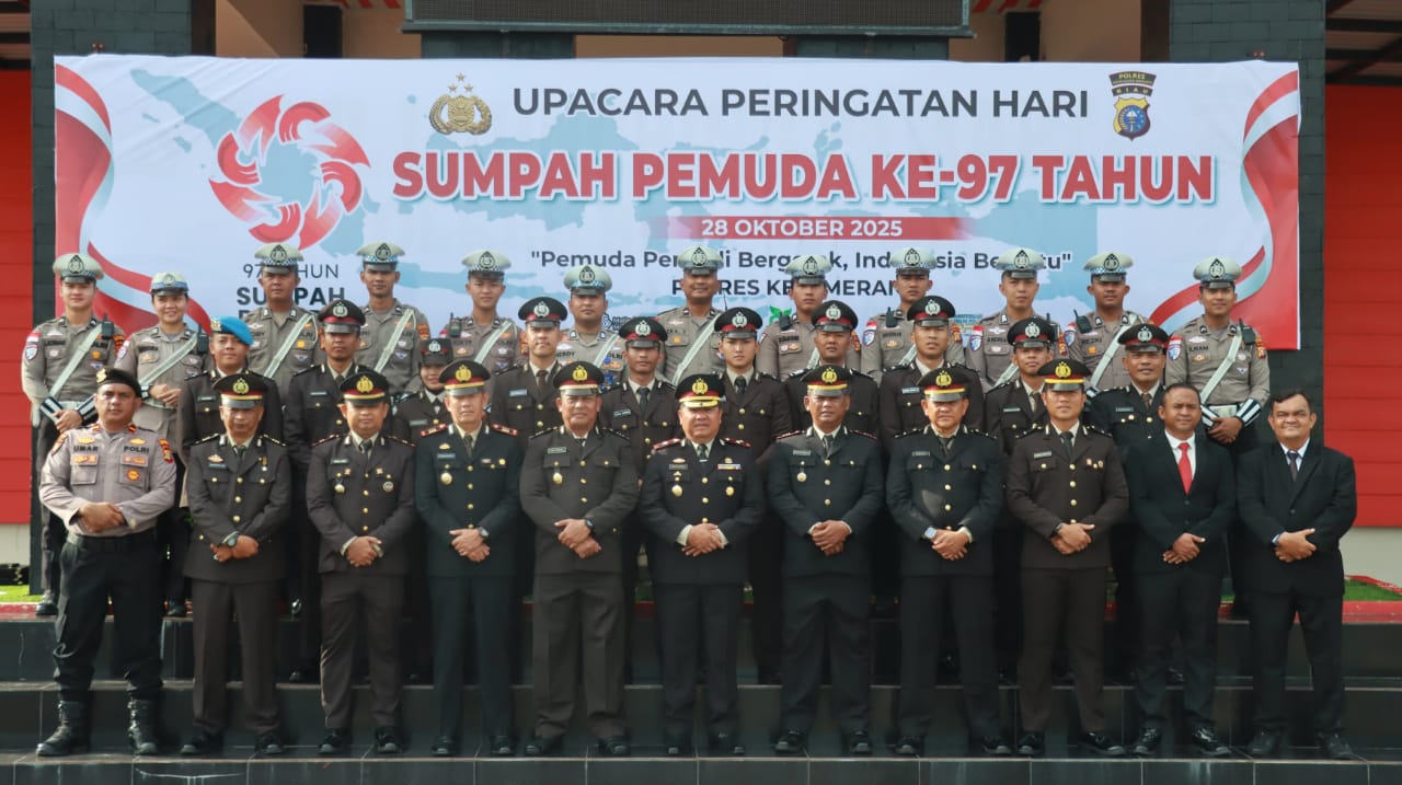 Viral24jam. Meranti – Polres Kepulauan Meranti, Polda Riau, menggelar upacara peringatan Hari Sumpah Pemuda ke-97 Tahun 2025, bertempat di Lapangan Mako Polres Kepulauan Meranti, Jalan Lintas Gogok, Kecamatan Tebingtinggi Barat, Selasa (28/10).