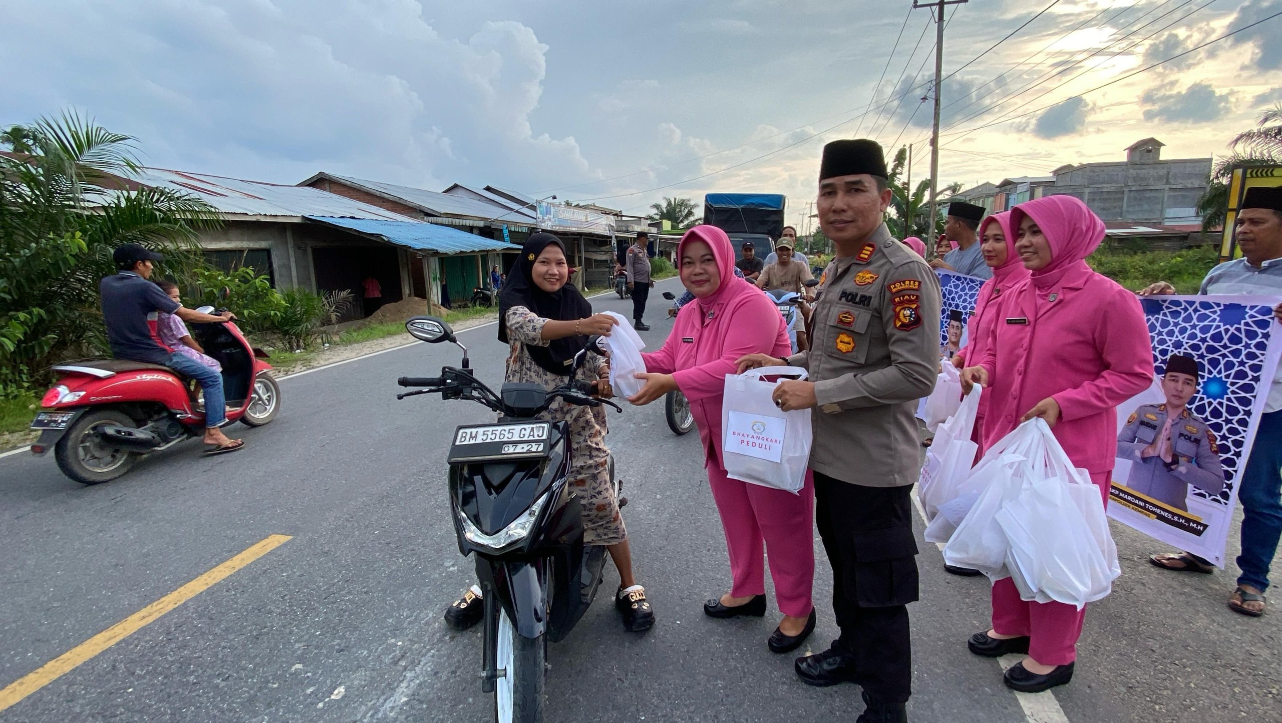 VIRAL24JAM.ID,INHIL.-Dalam rangka Operasi Tertib Ramadhan Lancang Kuning 2025, Polsek Kempas bersama Bhayangkari melaksanakan kegiatan berbagi takjil kepada masyarakat. Kegiatan ini berlangsung pada Rabu (5/3) sore di depan Mako Polsek Kempas, Polres Indragiri Hilir. Personil Polsek Kempas dan Bhayangkari turun langsung ke jalan untuk membagikan ratusan paket takjil kepada pengendara dan masyarakat sekitar.