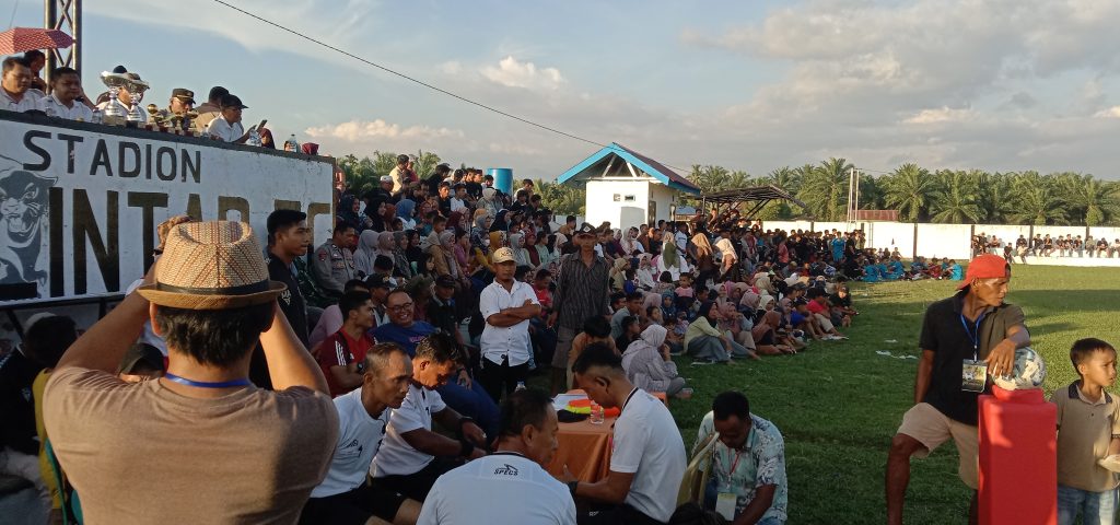 Viral24jam.id|Pessel-Ribuan Penonton memadati lapangan Halilintar Nagari Tanjung Pondok Kecamatan Basa Ampek Balai Tapan Kabupeten Pesisir Selatan menyaksikan laga final Open turnamen sepak bola Halilintar Cup V tahun 2025 yang berlangsung pada senin, (19/06/2025)