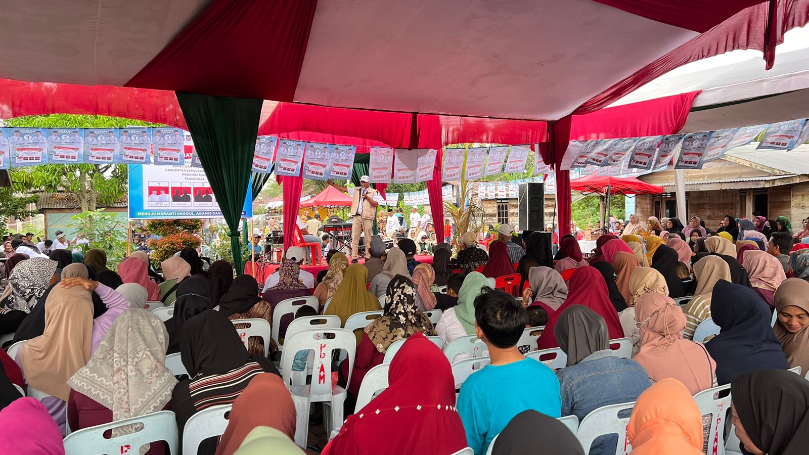 Viral24jam. MERANTI – Ribuan warga GG Dulia, Selatpanjang Timur, Kecamatan Tebing Tinggi, menyambut kedatangan calon Bupati Kepulauan Meranti nomor urut 01, H. Asmar-Muzamil, dalam kampanye terbuka yang berlangsung pada Kamis (14/11/2024).