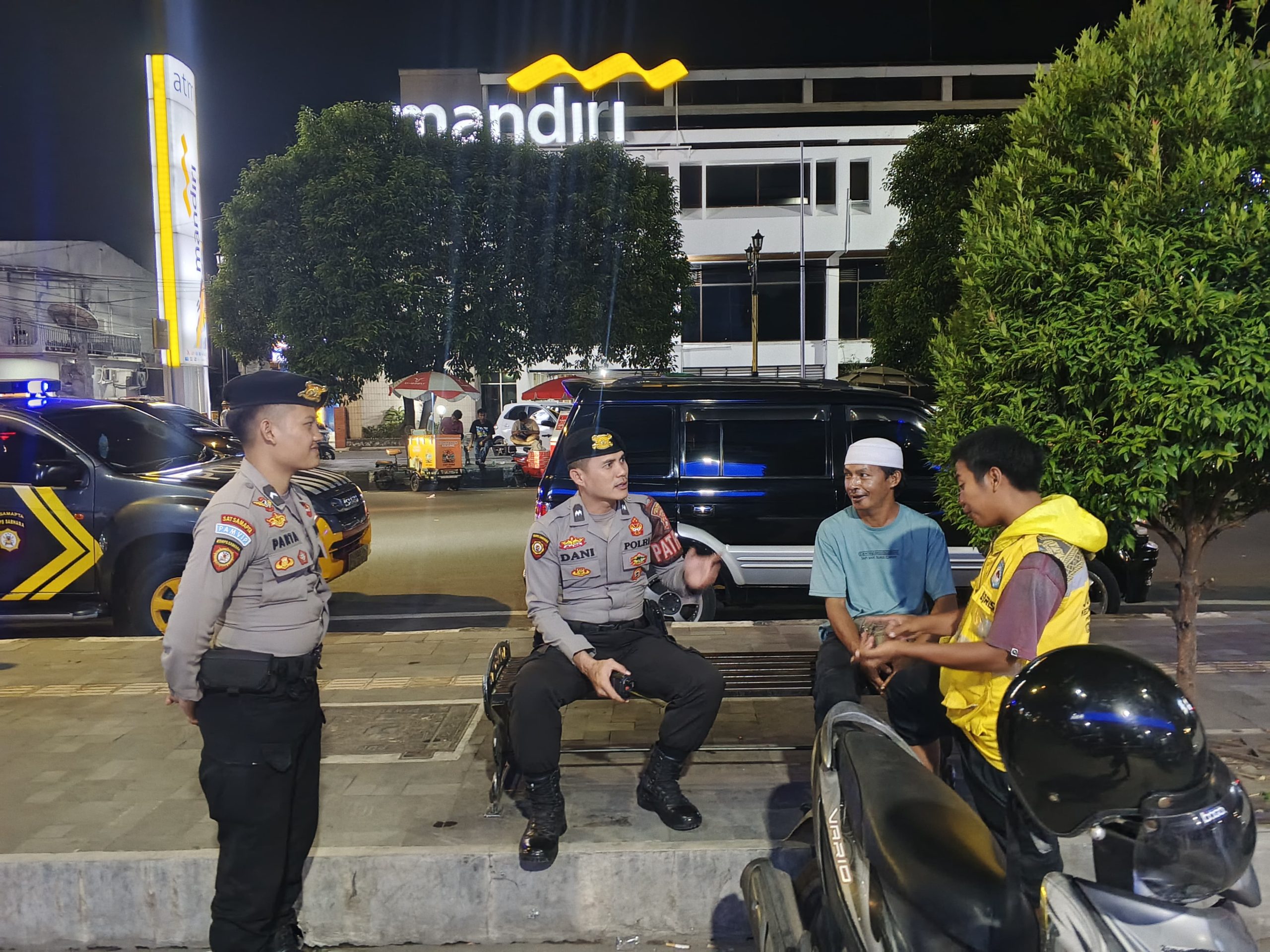 Patroli ini menyasar sejumlah titik rawan dengan berinteraksi langsung bersama petugas keamanan, juru parkir, hingga masyarakat yang masih beraktivitas di sekitar lokasi. Melalui dialog, personel menyampaikan imbauan kamtibmas sekaligus memastikan situasi tetap aman dan terkendali.
