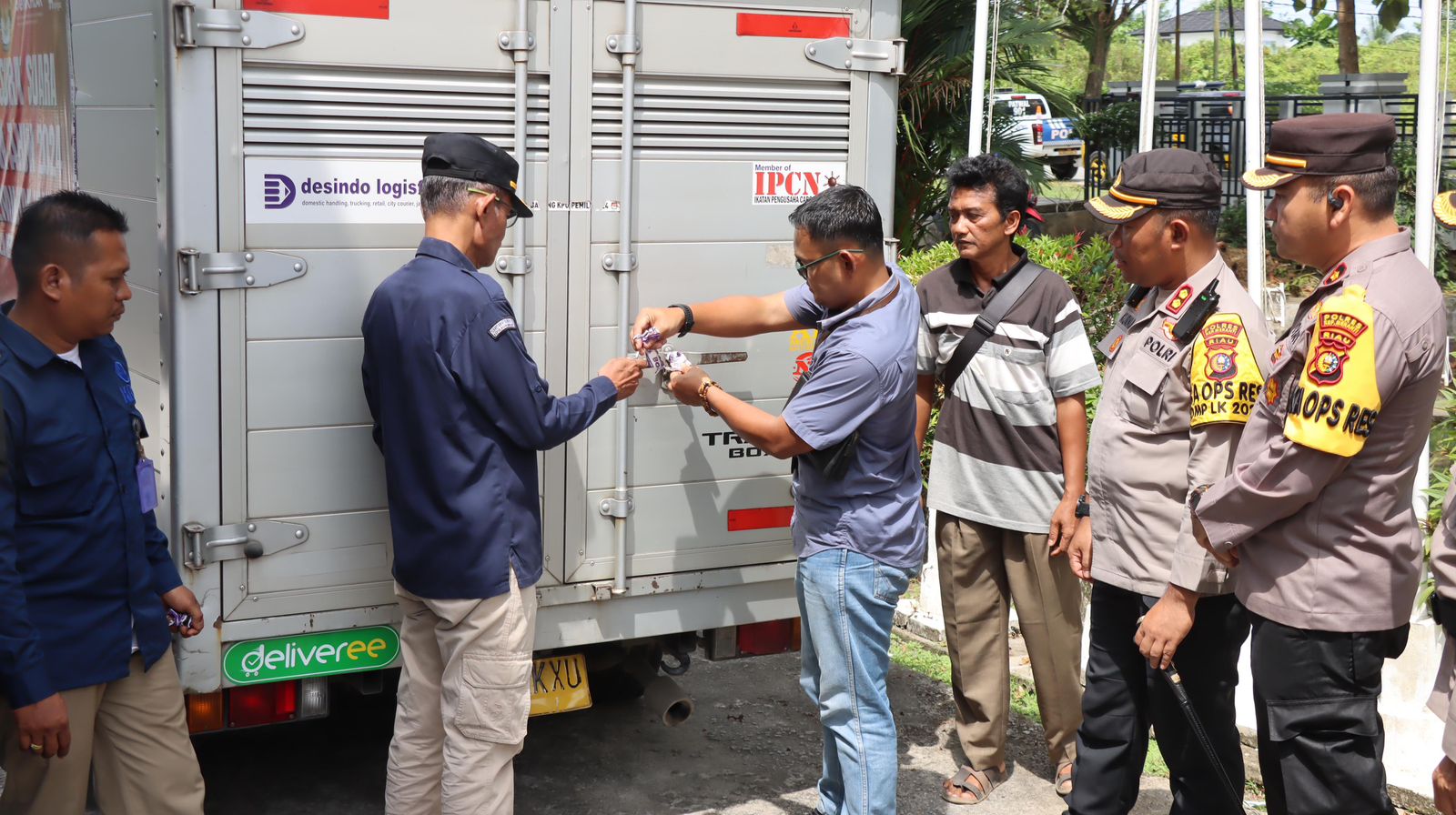 Pengawalan logistik tersebut dilakukan oleh personel OMP LK 2024 Polres Meranti, Brimob Polda Riau yang memastikan keamanan selama penerimaan sebanyak 155740 surat suara yang tiba di lokasi tersebut.