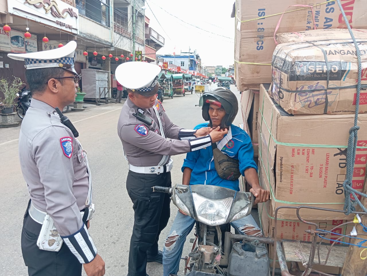 Adapun himbauan yang di berikan kepada Pengendara becak motor agar mematuhi peraturan lalulintas disaat berkendara di jalan raya agar memakai helm SNI dengan benar.