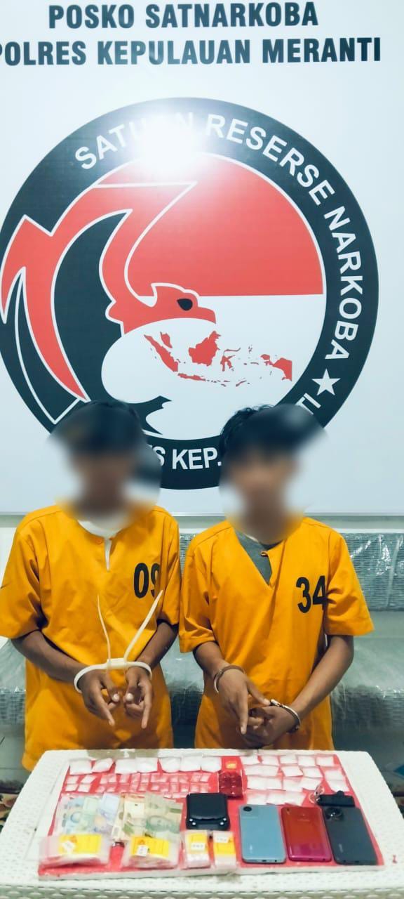 Kapolres Kepulauan Meranti AKBP Kurnia Setyawan melalui Kasat Narkoba Iptu Suryawan Fadli mengatakan bahwa pengungkapan dilakukan pada Selasa (17/12/2024) sekira pukul 19.00 WIB. Dari sana pihaknya mengamankan 2 pria terduga pelaku yang berperan sebagai kurir yakni RK (16) dan UDW (19) warga Selatpanjang.