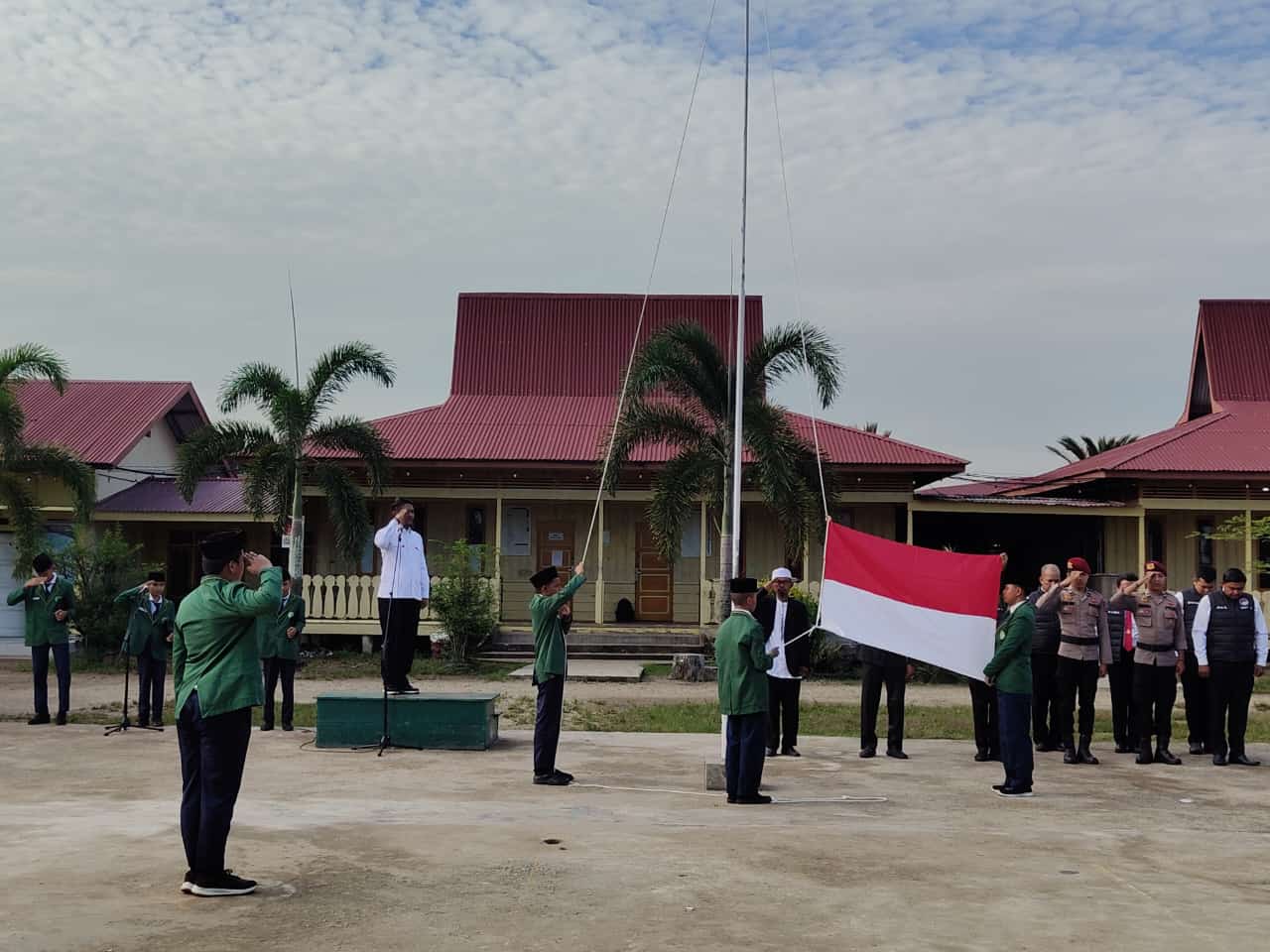 Viral24jam. Meranti – Kasat Narkoba Polres Kepulauan Meranti Iptu Suryawan menjadi pembina upacara di Pondok Pesantren Darul Fikri Jalan Rintis Ujung, Kota Selatpanjang pada Senin (21/10/2024) pagi.
