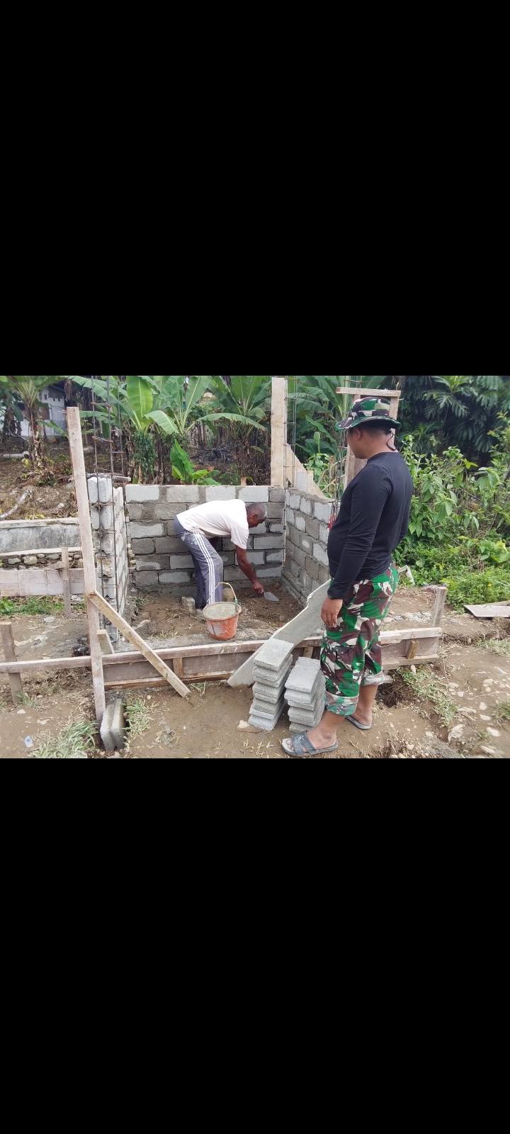 Pekerjaan pemasangan batako oleh Satgas TNI Manunggal Membangun Desa (TMMD) bersama warga menunjukkan semangat gotong royong yang tinggi, seringkali digambarkan dengan istilah