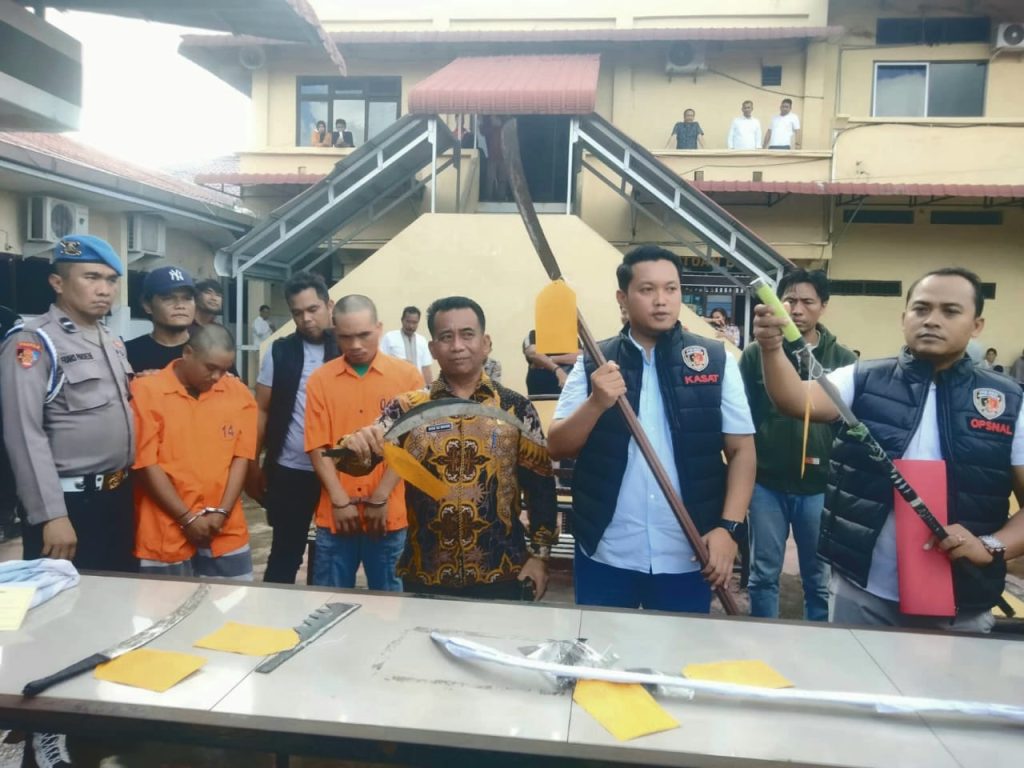 Kapolres Asahan AKBP Afdhal Junaidi mengatakan sebayak 14 orang kita amankan enam orang di antaranya menjadi tersangka meski mereka masih di bawah umur kita terapkan pasal darurat pasal 2 ayat 1 UUD darurat no 12 dengan ancaman 10 tahun penjara.”