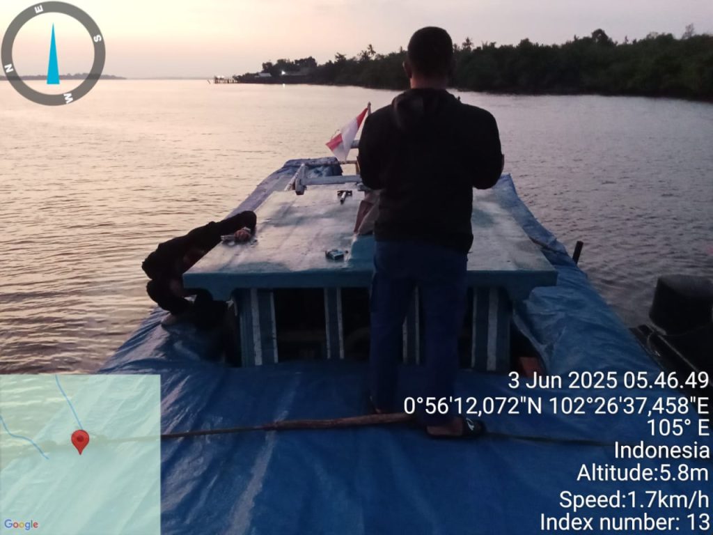 Bedasarkan informasi tersebut, tim gabungan berangkat menggunakan speedboad Sat Polairud menyusuri perairan Desa Kampung Balak dan perairan Selat Ringgit Desa Tanjung Peranap Pada hari Selasa tanggal 3 Juni 2025 sekira pukul 05.30 Wib, pada saat tim gabungan Sat Polairud dan Sat Reskrim Polres Kepulauan Meranti sedang melakukan penyelidikan di Desa kampung balak dan seputaran perairan Selat Ringgit Desa Tanjung Pranap Kecamatan Tebing Tinggi Barat.