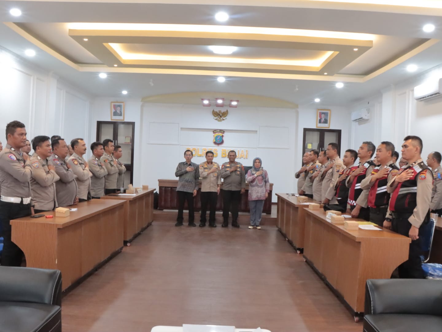 Ketua Tim Puslitbang Polri Kombes Pol. Guno Pitoyo, S.I.K., M.H., memberikan apresiasi terhadap jajaran atas kesiapan Polres Binjai dalam menerima Tim Puslitbang untuk melaksanakan kegiatan evaluasi kualitas kenderaan dinas Polri.