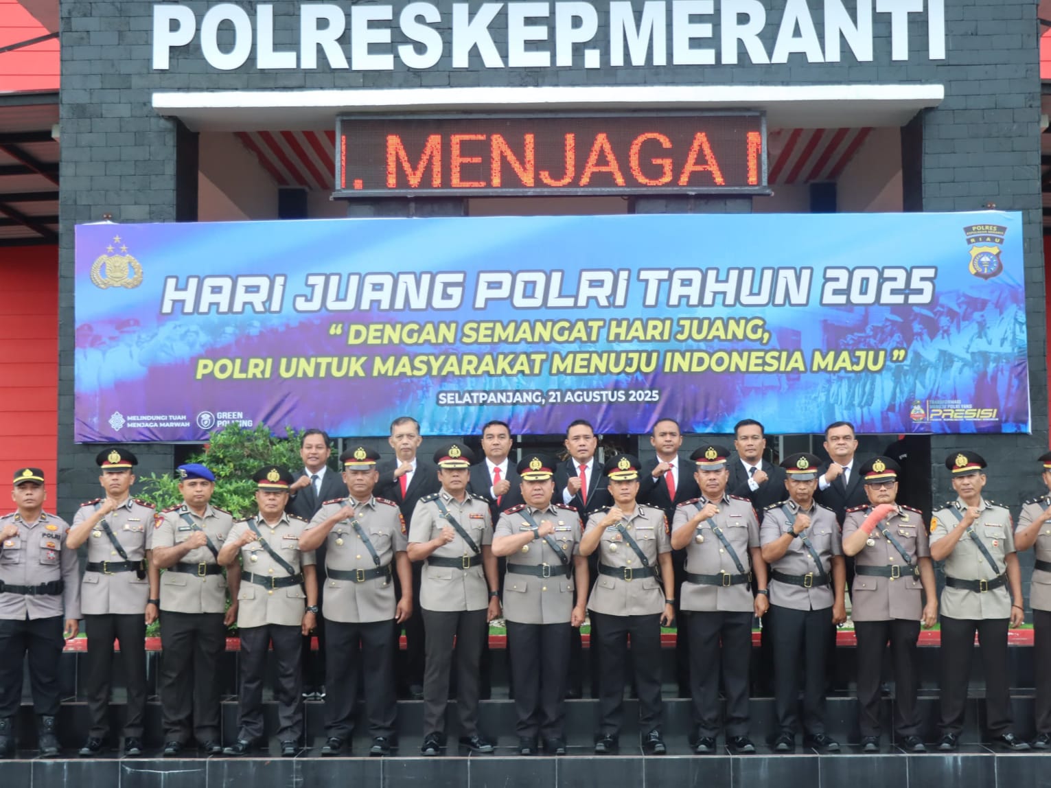 Viral24jam. Meranti –Kamis pagi, suasana tenang dengan cuaca teduh, telah dilaksanakan Kegiatan Upacara Peringatan Hari Juang Polri 2025, kegiatan berlangsung di Lapangan Polres Kep. Meranti Jl. Raya Gogok Darussalam Kec. Tebing Tinggi Barat Kab. Kep. Meranti(21/8/25)