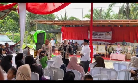 Dihadapan Ratusan masyarakat Desa Kumantan, Kecamatan Bangkinang Kota menghadiri acara tasyakuran Anggota DPR RI dari Fraksi Partai Gerindra Muhammad Rohid dan sekaligus kampanye Pasangan Calon Gubernur/Wakil Gubernur Riau H Muhammad Nasir/Muhammad Wardan dan kampanye Pasangan Calon Bupati/Wakil Bupati Kampar Yusri-Rinto Pramono, Selasa (08/10/2024).
